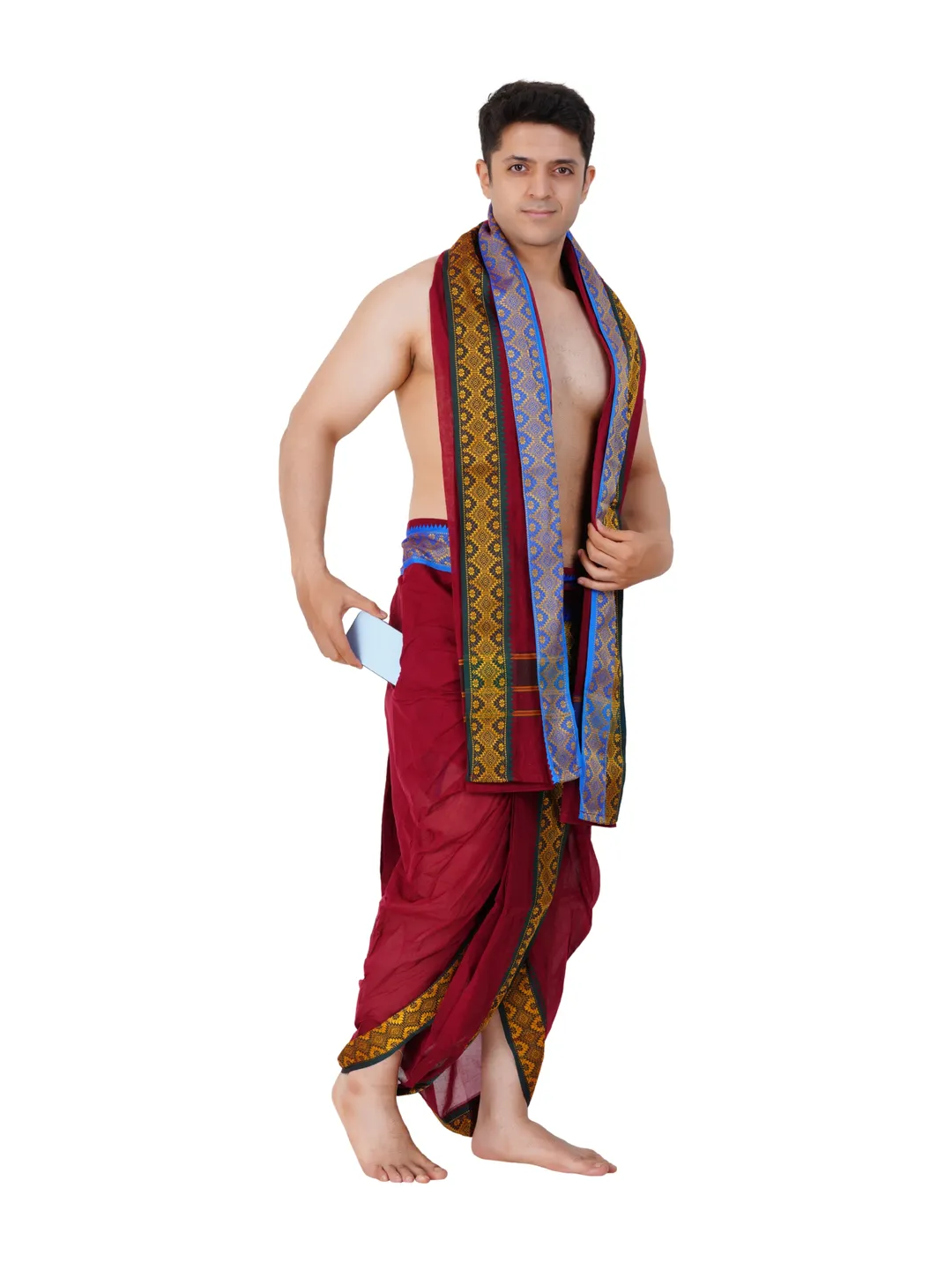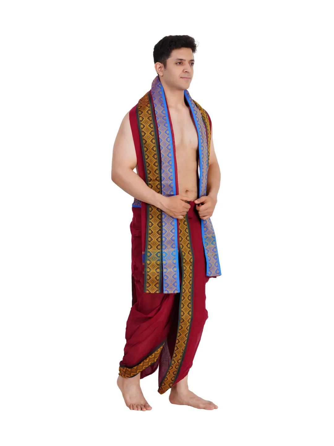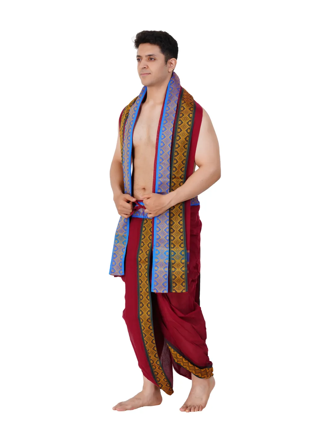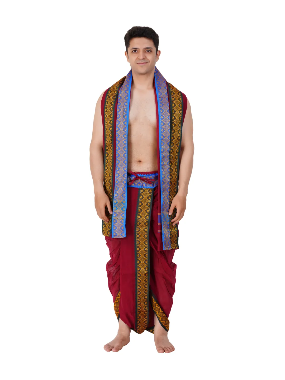 Ready To Wear (readymade) Cotton Maroon Colour Panchakacham with Towel Set (3 inch)