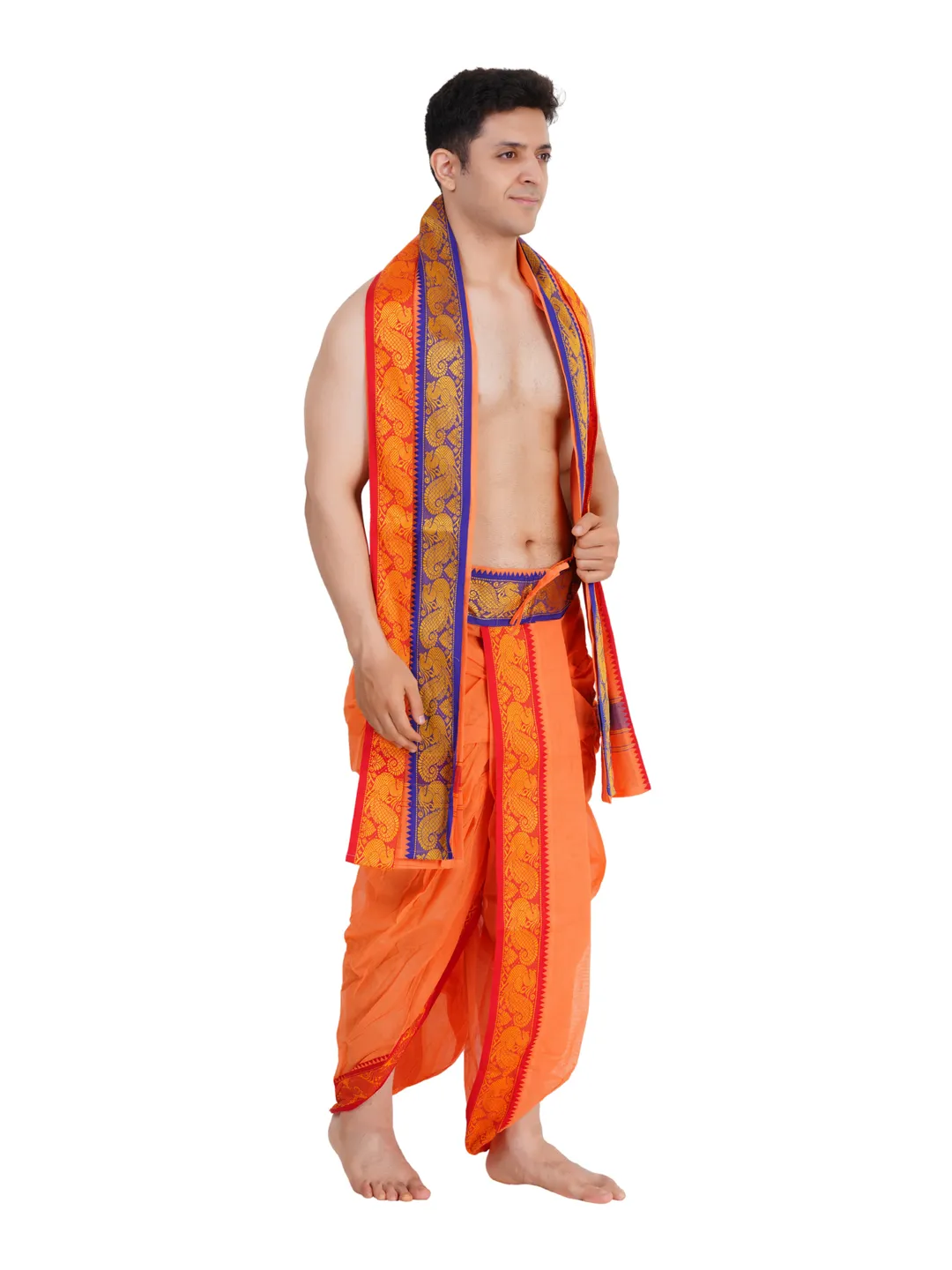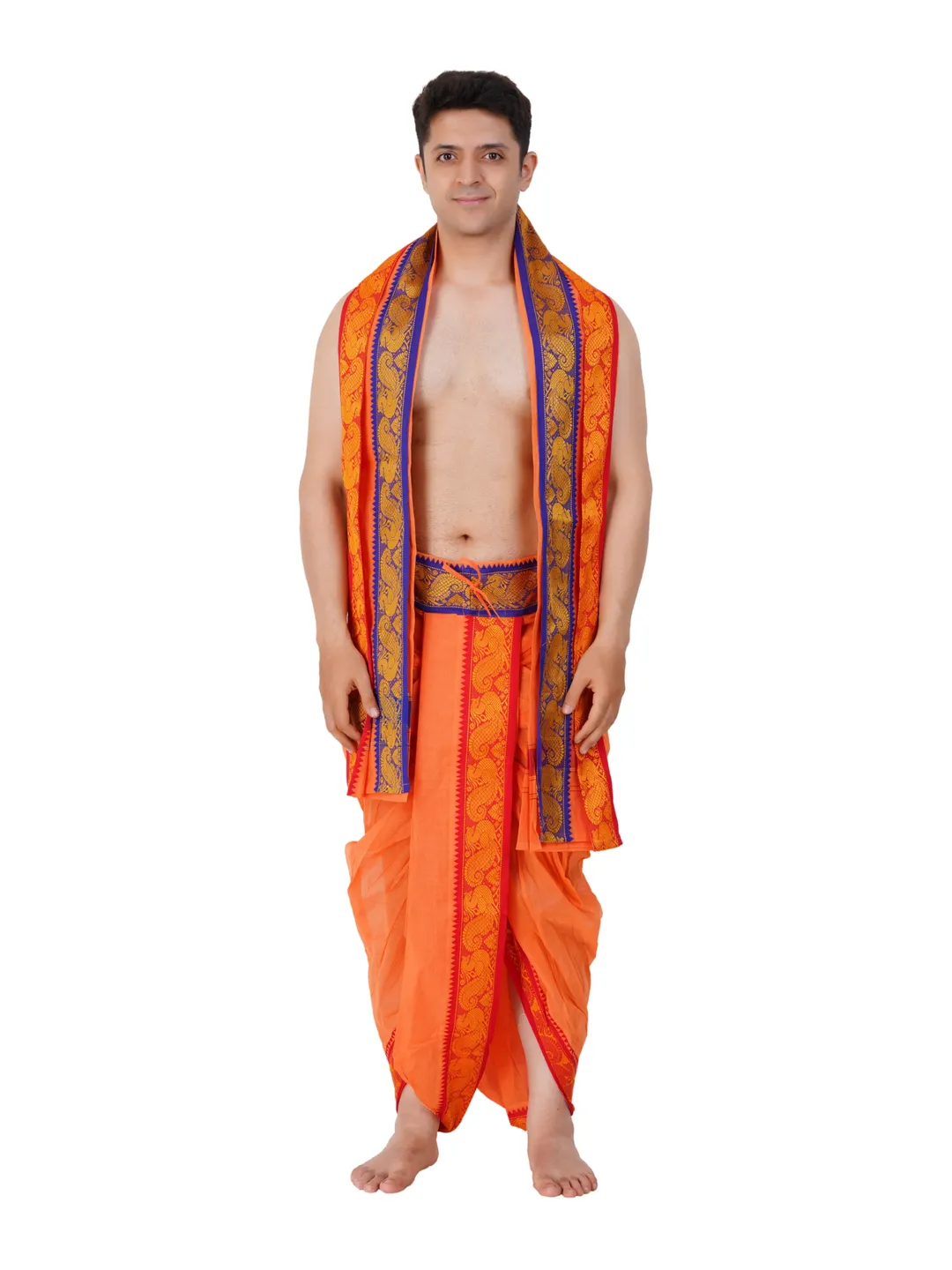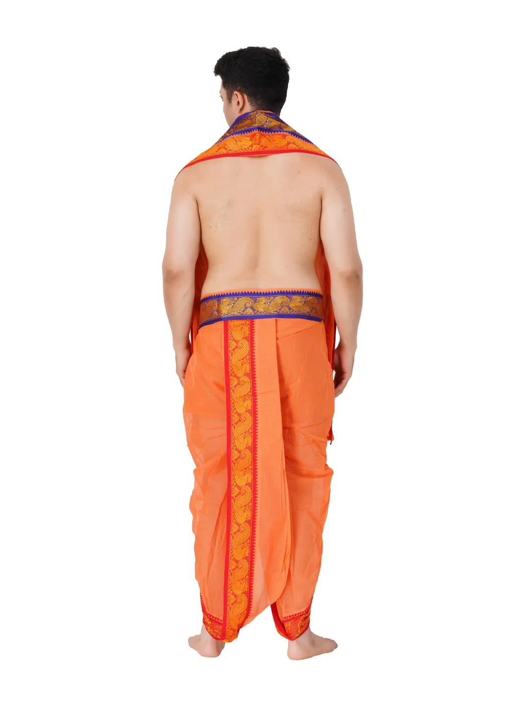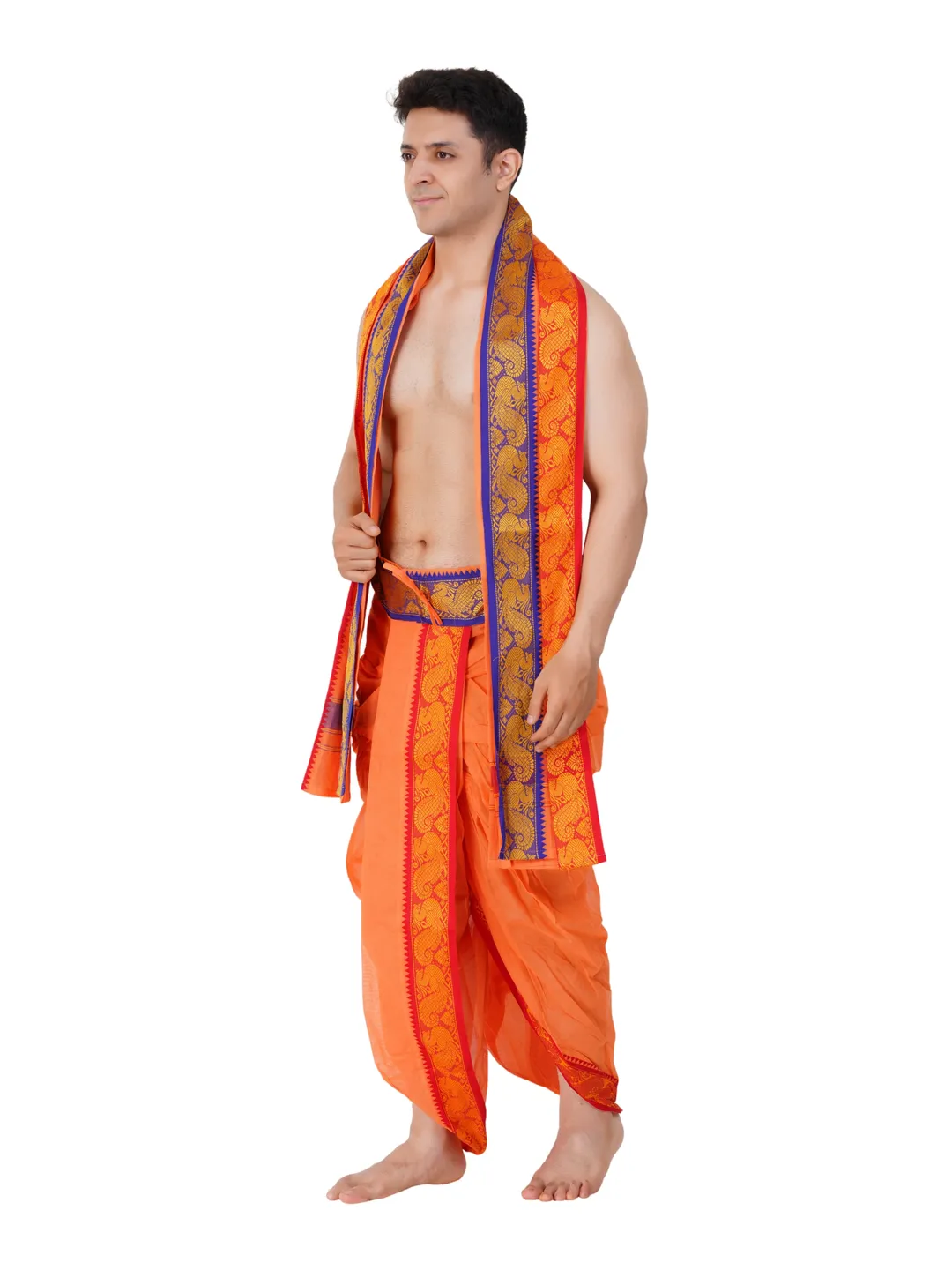 Ready To Wear (readymade) Cotton Medium Kavi Colour Panchakacham with Towel Set (3 inch)