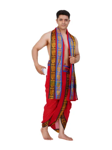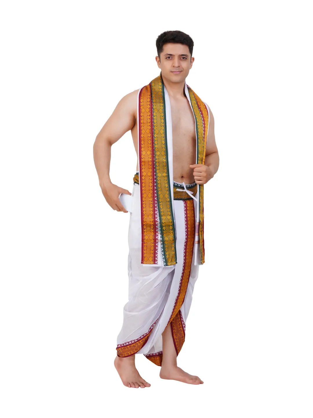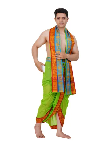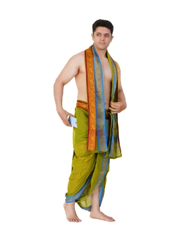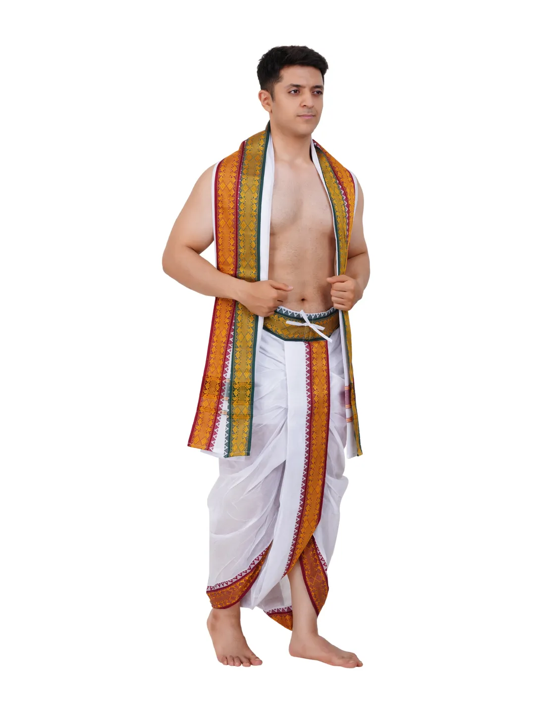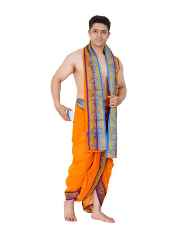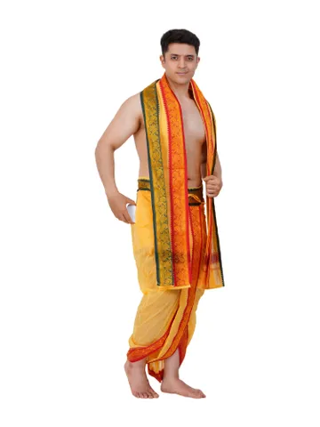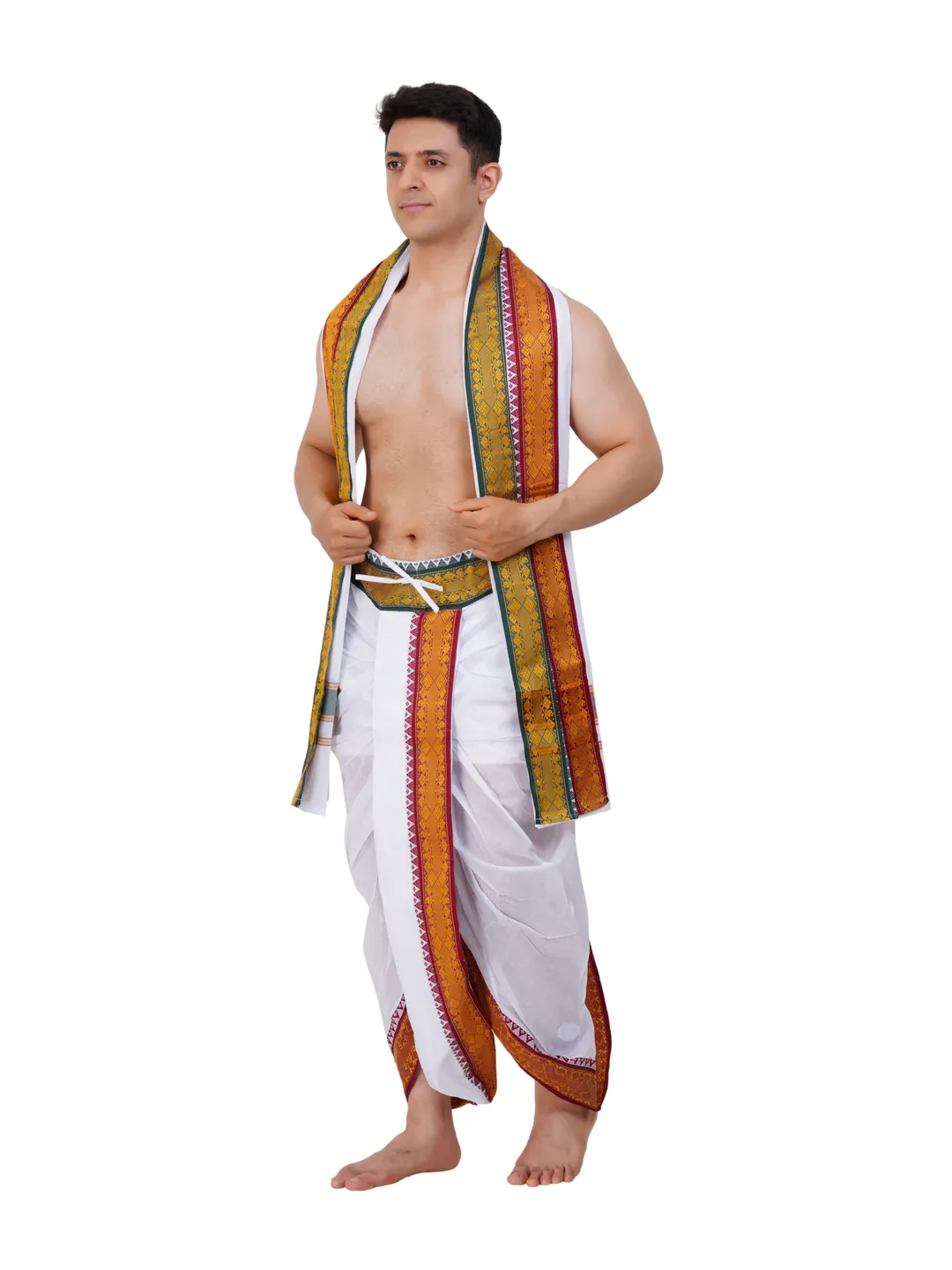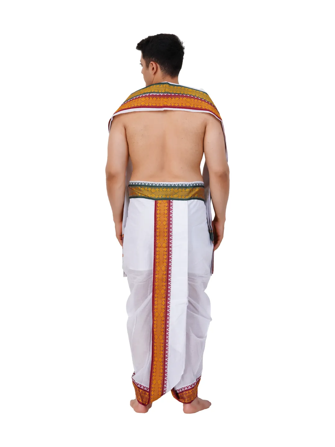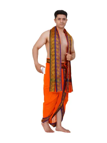 Ready To Wear (readymade) Cotton White Colour Panchakacham with Towel Set (3 inch)