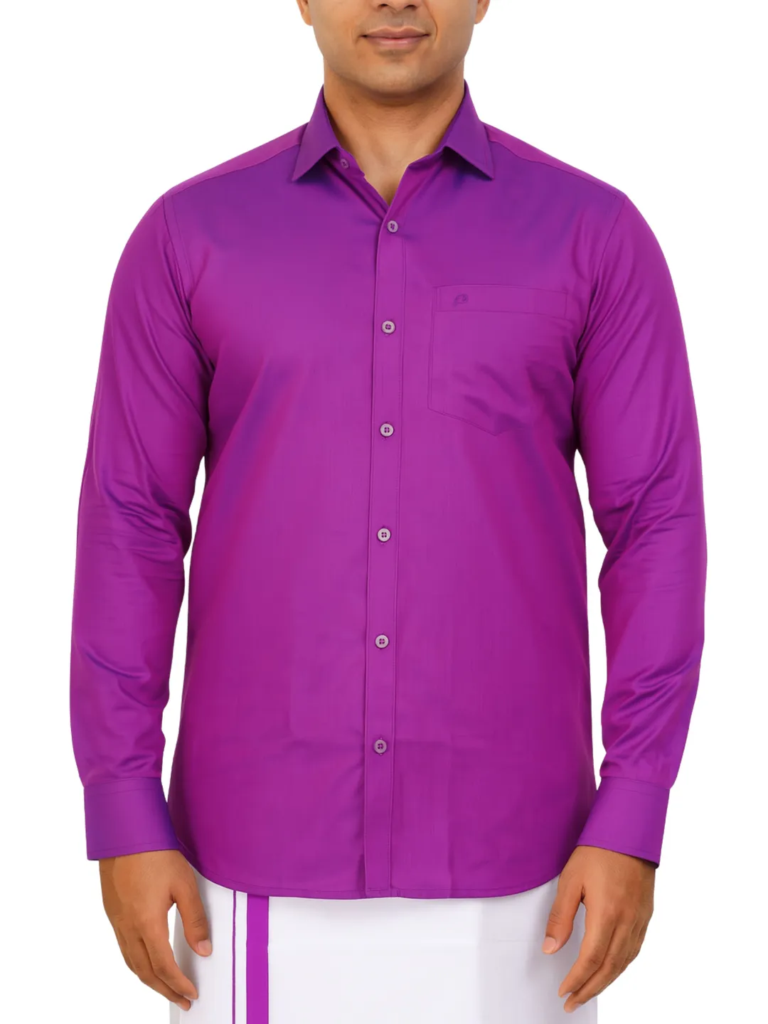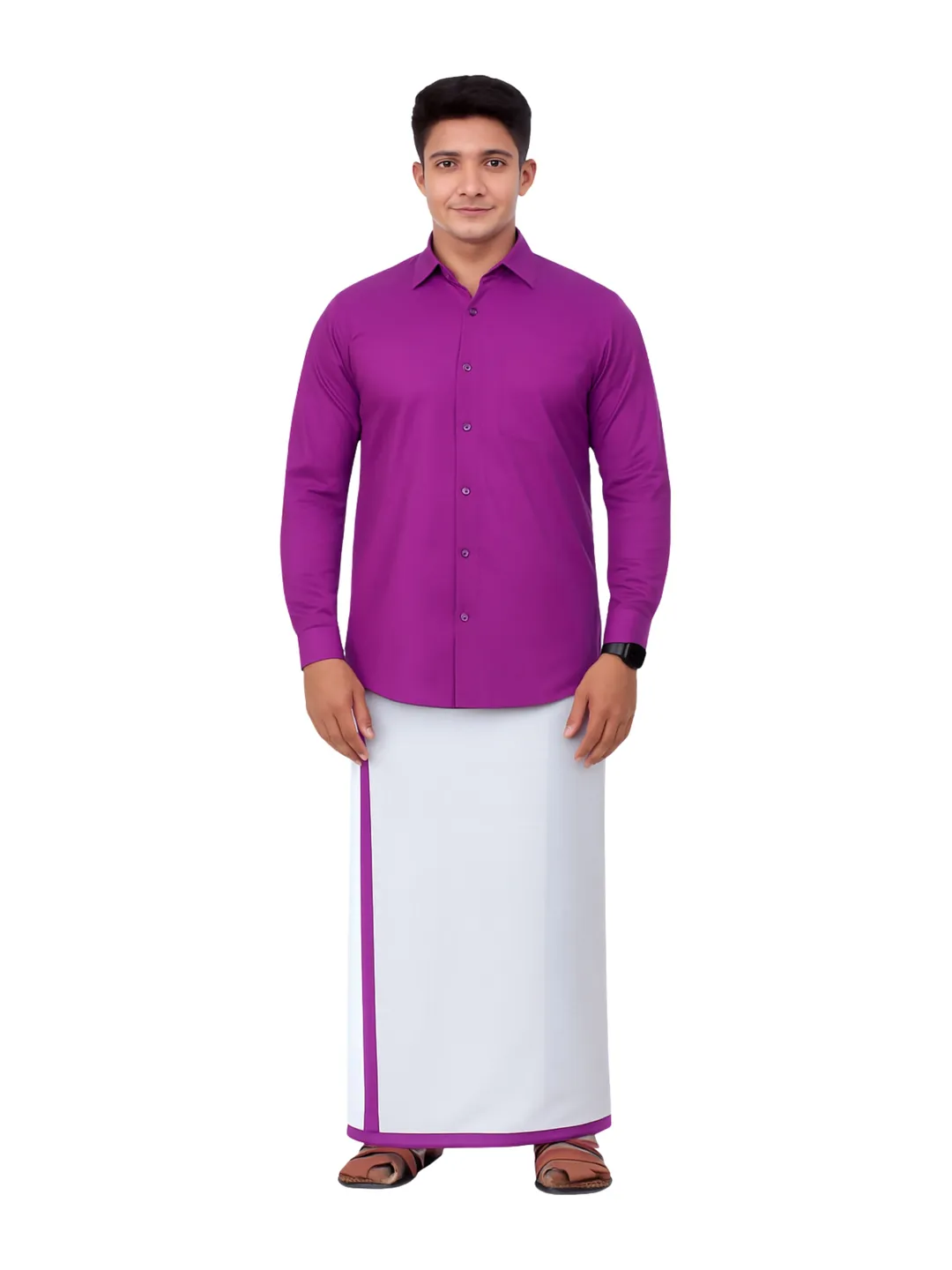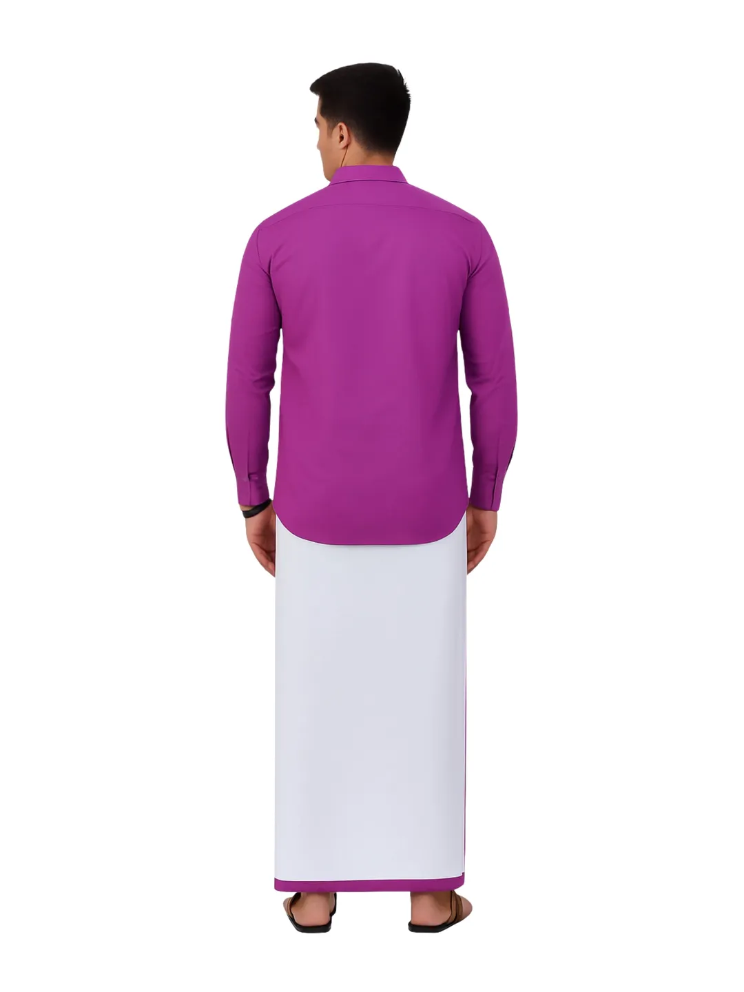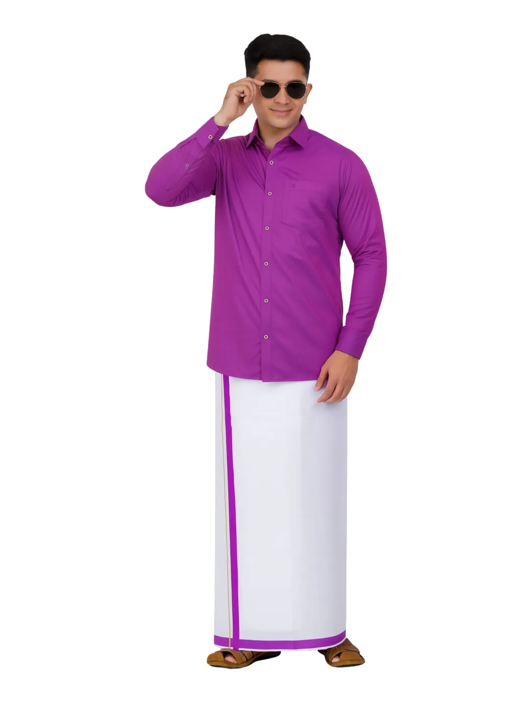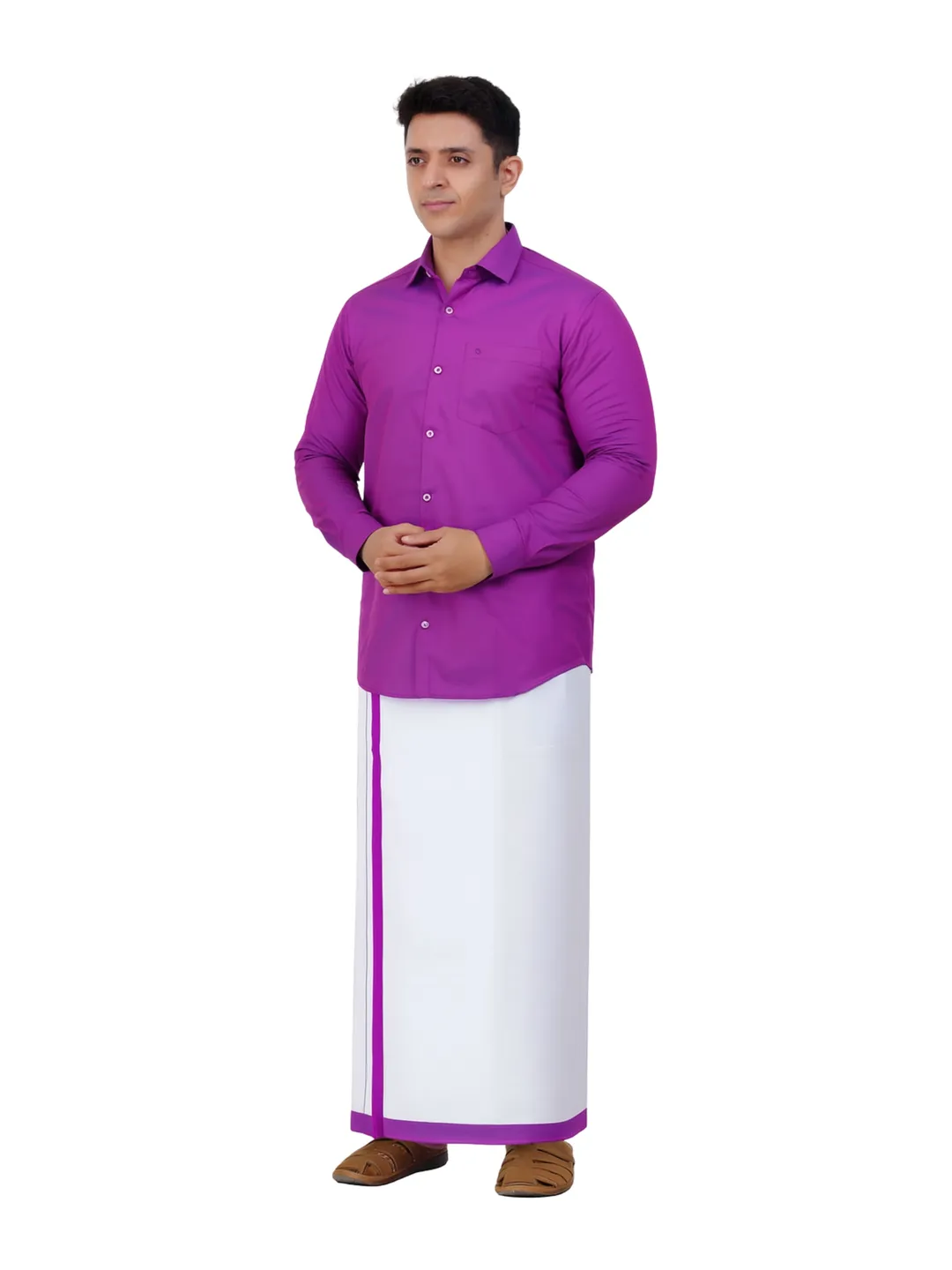 Readymade Full Sleeve Violet Colour Shirt and Matching Border Dhoti Set