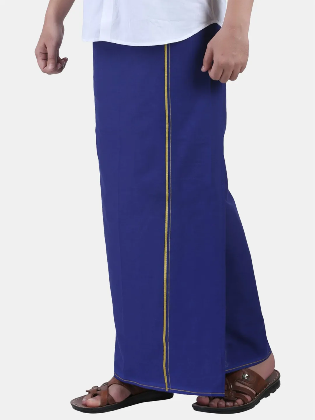 Product Details This multi colour cotton Roja Kambi Kara Single solid men dhoti for the all ages. Its a free size dhoti(1.28x2.00Mtrs). It's best suitable for temple and casual wear.