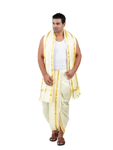 Product Details When combining two pieces measuring 1.30 by 2.20 meters, a perfect attire suitable for both temple and casual occasions is created. The garment features a border of 1-inch Jari, enhancing its overall aesthetic appeal. To preserve the quality of this dhoti, it is essential to adhere to specific care instructions. Silk, art silk, and poly materials necessitate meticulous handling to ensure their lasting elegance. Proper maintenance can prolong the longevity of silk fabrics. When washing, it is advisable to avoid using soap for the initial three washes and instead opt for a gentle rinse in plain cold water.