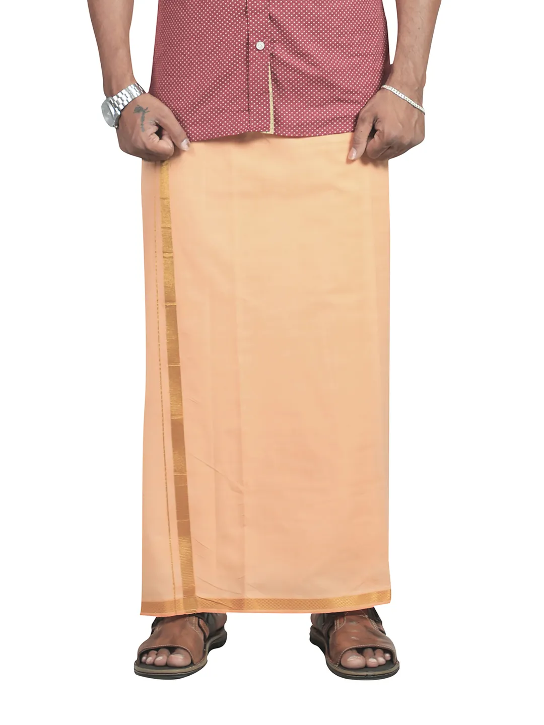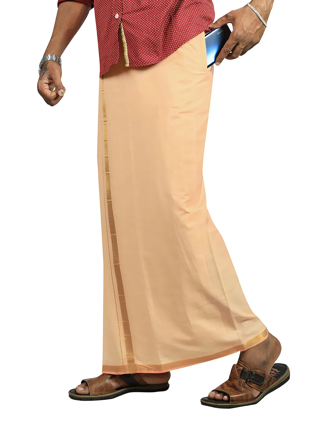 SS Jari Cotton Flexi Size Readymade pocket Jari Light Kavi Dhoti